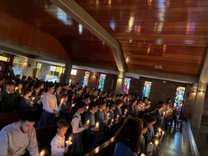 Los alumnos de 4° de primaria del Colegio Virgen de Mirasierra que hacen este año la primera comunión, tuvieron el jueves 29 de enero una emotiva celebración de la renovación de las promesas del bautismo. Se repitió el rito de la luz y del agua de su bautismo con un ambiente de oración y respeto enormes.