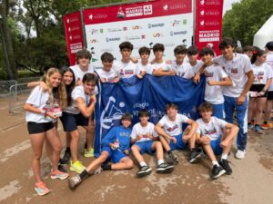 Un representación de 50 atletas han corrido los 4,2km de la MiniMaratón Madrid-Nebrija en el Parque del Buen Retiro. Ha sido una mañana para disfrutar de la actividad física, rodeados de participantes de colegios de todo Madrid. El resultado era lo de menos, pero felicitar a Izan Cañibano por un tercer puesto y a Iara Cañibano por un segundo puesto en sus categorías. Y un increíble primer puesto por equipos en la categoría Infantil Femenina.